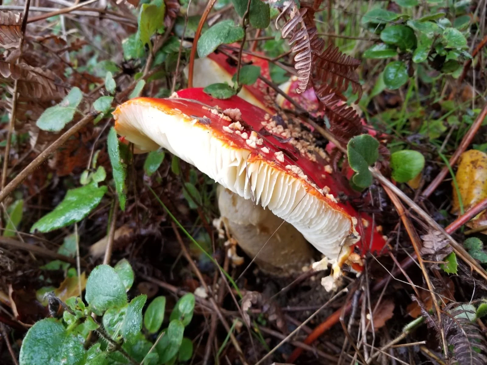 I have long been fascinated by the brilliant vermillion-hued mushrooms that appear in fairy tales and European holiday iconography. Last year on one of my daily walks I was delighted to see some popping up in a neighbor's yard. Ever since then Amanita Muscaria have been on my radar, and now I'm seeing them every day here in Sonoma County.